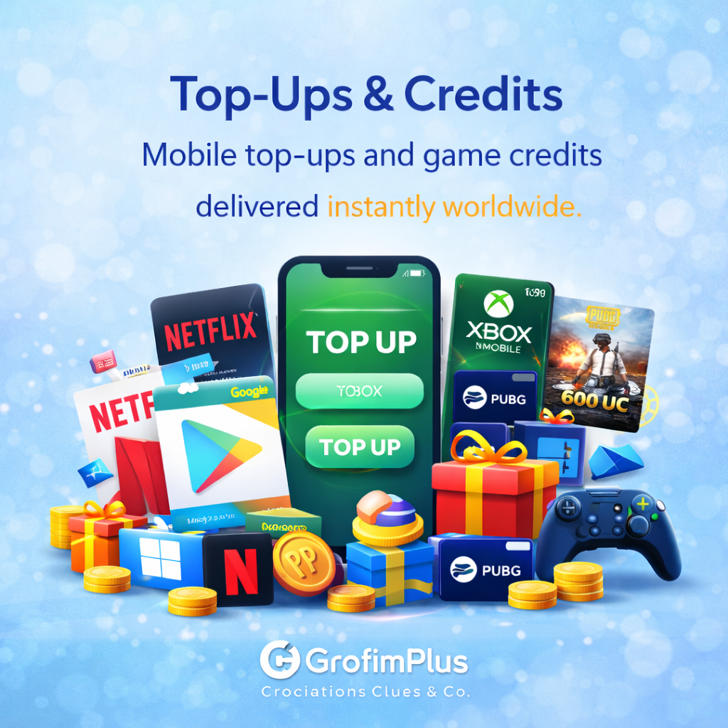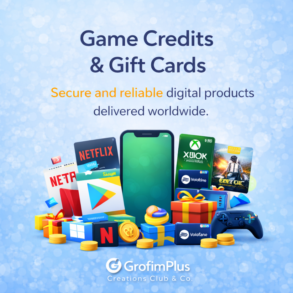 Grofim Plus is a digital platform offering game credits, gift cards, and mobile top-ups.